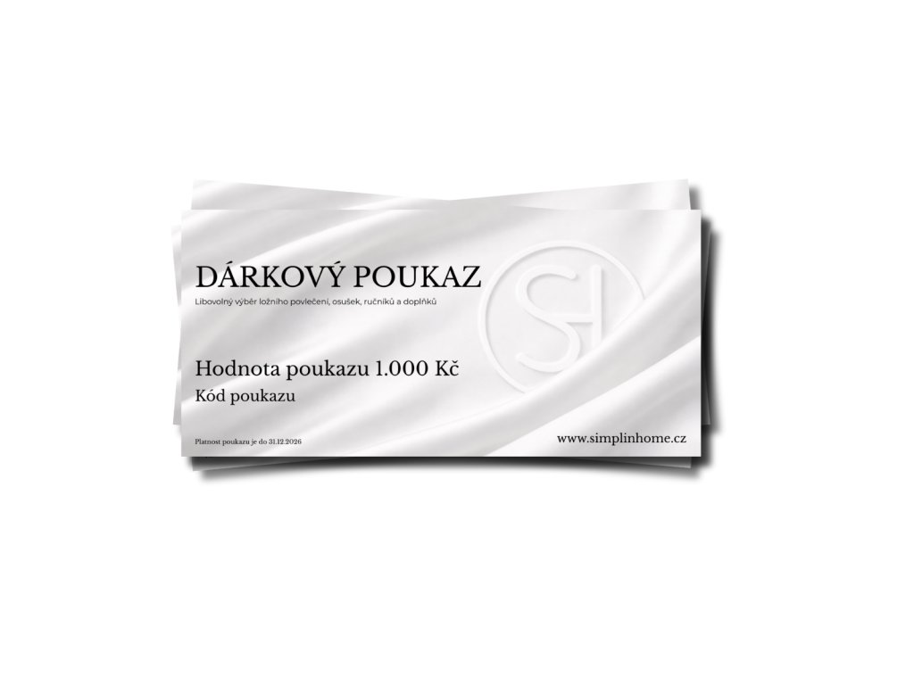 Stylový dárek s větší volností výběru. Dárkový poukaz 3 000 Kč na kvalitní povlečení, ručníky a doplňky Simplin Home.